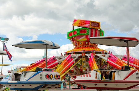 Colorful carosuell in motion at a fun fair. Global Village, Dubai