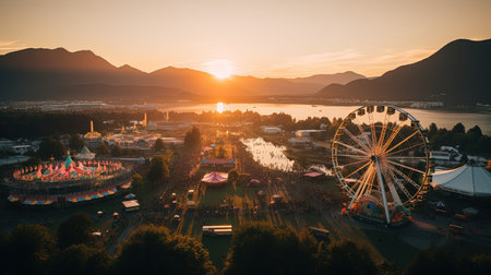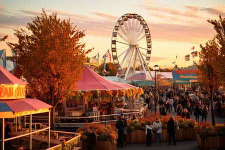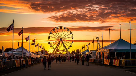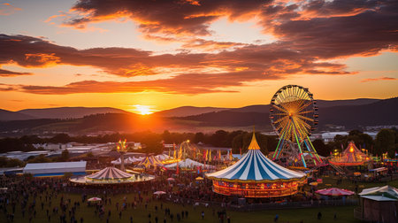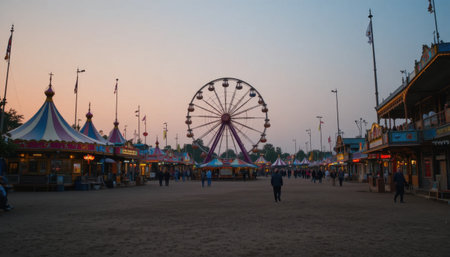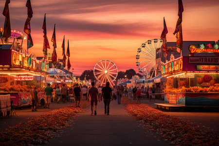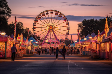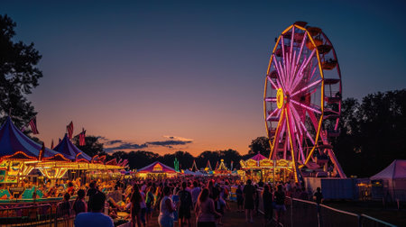 Twilight Festive Spectacle, Colors Come Alive at a Summer Carnival. Generative AI