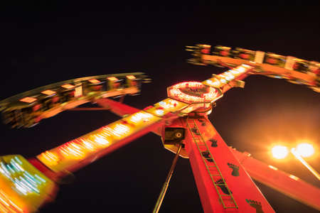 View looking up at the carousel swing ride Carnival Midway at night