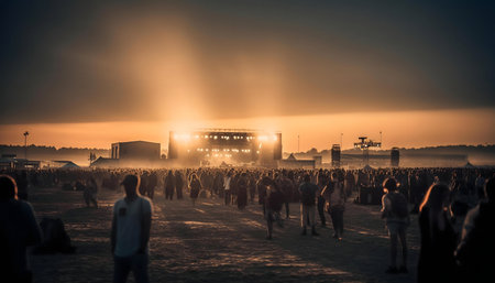 immerse yourself in the electrifying atmosphere of a live music concert. experience the thrill of the crowd and the vibrant stage lights at a music festival