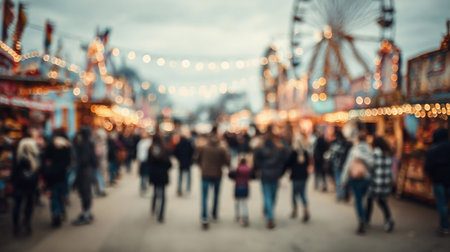 blurred background of people walking on a fair exhibition