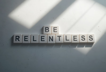 A striking image featuring the motivational phrase Be Relentless displayed boldly, serving as a powerful reminder of the importance of persistence and determination in achieving goals.