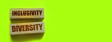 Inclusivity diversity words on wooden block on the yellow. Social concept