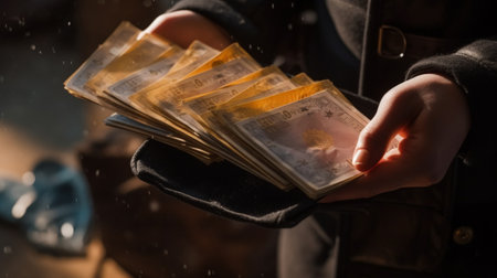 Generative AI : human hands holding money dollars 100 US dollar banknote isolated on white background