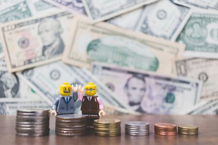 CHIANG MAI , THAILAND - September 23 , 2017 Miniature Business people with US dollar banknote background