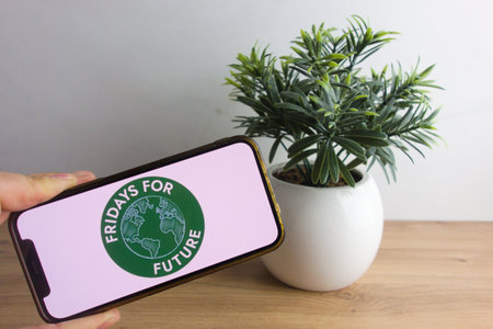 KONSKIE, POLAND - March 26, 2022: Fridays For Future movement logo displayed on mobile phone