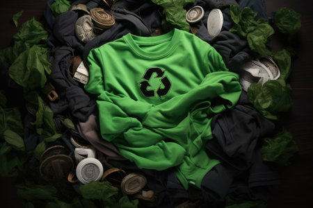 ethical brands and fair trade concept, pile of clothing with Sustainable Fashion label