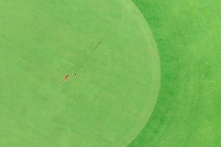 top view of golf pole on the green in a golf course with blank copyspace