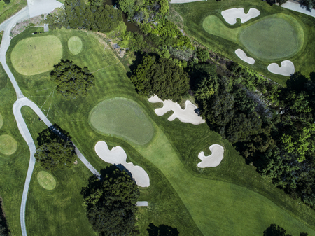 Aerial top view of golf course with green field. Green turf scenery. Temecula, California, USA