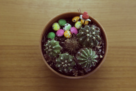 Small cactus in pot. Succulent cactus plant garden