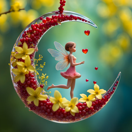 A fairy using a crescent moon to send messages written in starlight to her distant friends