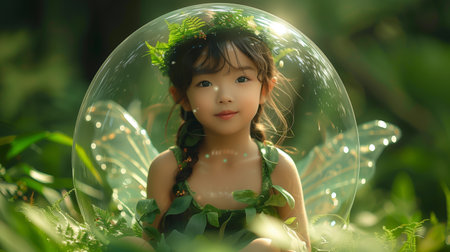 Enchanting Fairy Child Smiling in a Magical Forest During Golden Hour.