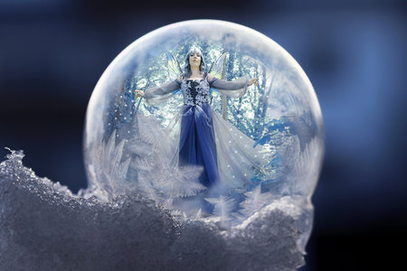 Beautiful fairy with magic ball. Christmas and New Year concept.