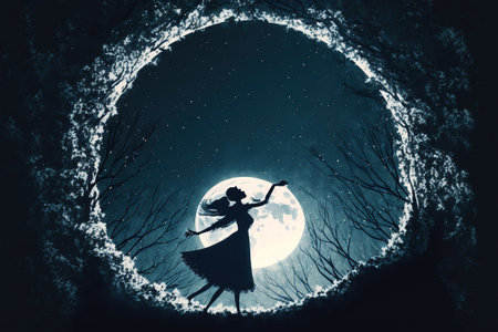 Girl dancing. A ballerina dancing with fireflies on the hill against the night sky, digital art style, illustration painting