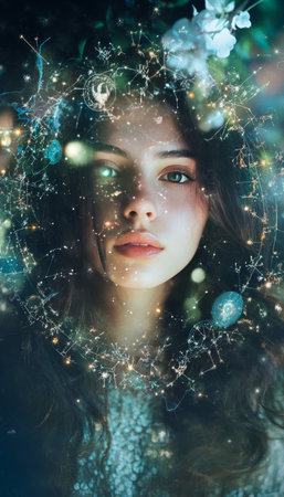 Artistic representation of the virgo zodiac sign in a twelve zodiac concept photography shot