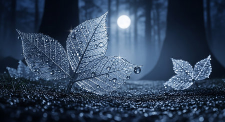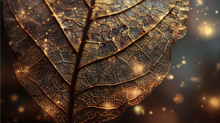A stunning close-up of a textured leaf showcasing intricate details illuminated by sparkling light, ideal for themes of nature, beauty, and organic design.