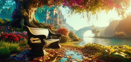 An abstract Garden of Eden that creates an atmosphere of calm and tranquility, captivating you into the world of colored dreams. AI generated.