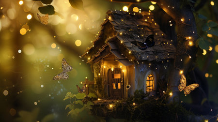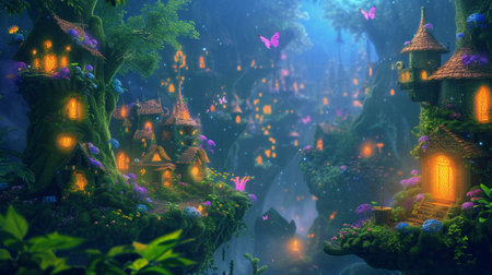 Enchanted forests and magical creatures shimmering pixie dust and sparkling fairy lights in a whimsical scene