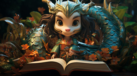 Illustration of a child reading in the outdor, 3d realistic and cartoon