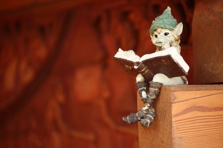 Little girl reading book in magic forest. Fairy tale. Christmas story.