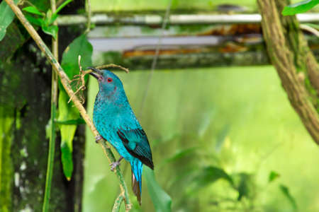 Asian Fairy-bluebird on the branches. Fairy blue bird in the jungle. Asian Fairy Bluebird in the indoor rainforest