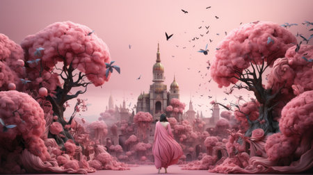 abstract fairies in the valley of the fairies with flora in pastel colors, illustration