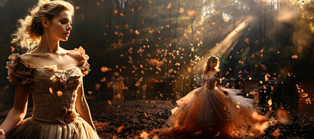 Beautiful girl in the forest at sunset. Fairy tale theme.
