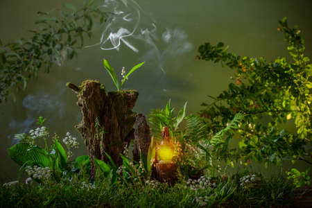 Enchanted forest and 3d fairy or elf man, fantasy illustration, photomanipulation.