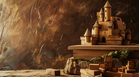 Open book with fairy tale castle on wooden table. Halloween concept.