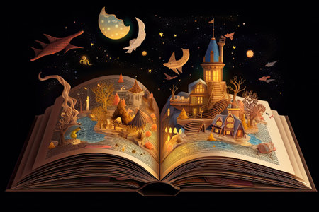 A book opening to release a whirlwind of fairy tales and adventures