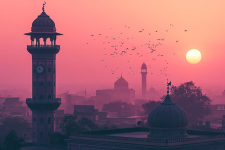 Sunrise at the mosque in Jaipur, Rajasthan, India