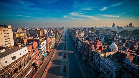 Amazing city Kolkata India sunny day aerial shot