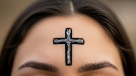 Woman with ash cross on forehead, Ash Wednesday, religion, Christianity.