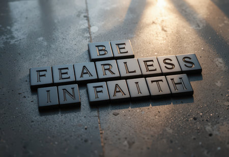 A striking layout of black text blocks reading Be Fearless in Faith on a textured surface. This image evokes a powerful message of inspiration and empowerment.
