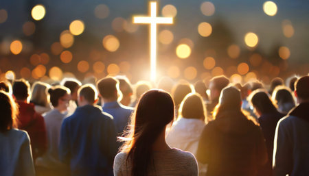Closeup of a group of hands intertwined in unity, with a metal cross dangling from one wrist, capturing the idea of hope as a unifying force that brings people together