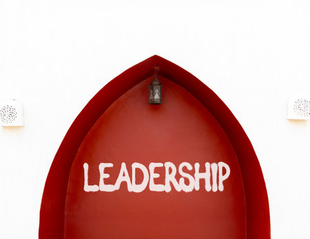 Leadership symbol. Concept word Leadership on beautiful red wall. Beautiful red and white wall background. Business leadership concept. Copy space.