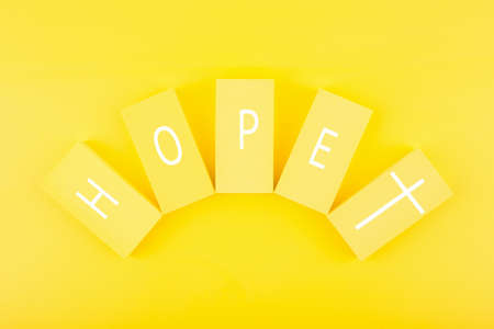 Modern religious minimal concept of hope with christian cross on bright yellow background