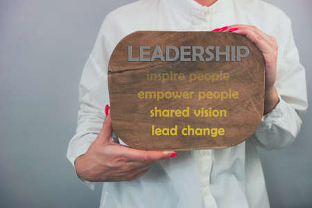 Leadership related text on wooden board. Business success, influence and teamwork concept