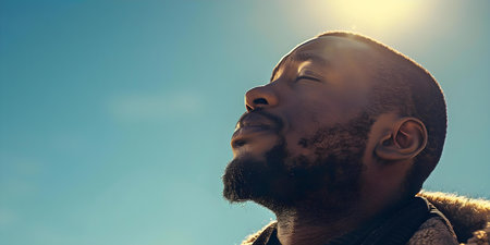 A Man Deep in Prayer, Gratefully Gazing at the Sky. Concept Prayer, Meditation, Gratitude, Contemplation, Connection