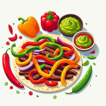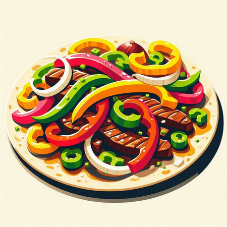 A mouthwatering 3D illustration of a classic fajita. showcasing its delicious ingredients and tempting aroma. Perfect for food blogs. restaurant menus. and social media posts.
