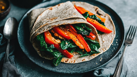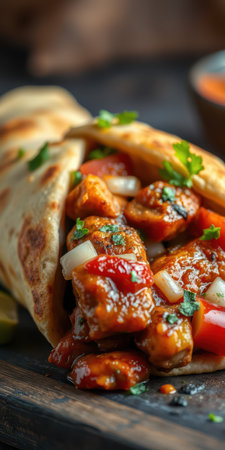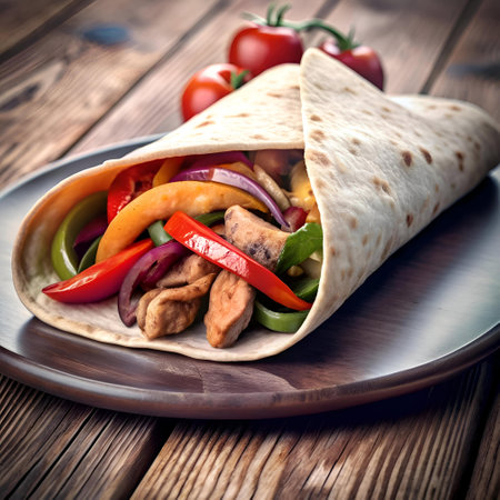 Savory grilled chicken wrap with fresh vegetables and vibrant colors ready to delight taste buds