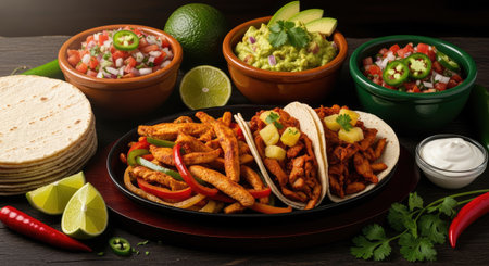 A vibrant display of traditional Mexican dishes, perfect for culinary projects and food-related content