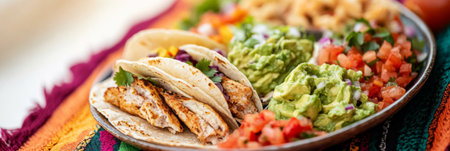 Cinco de Mayo celebration with vibrant tacos and guacamole, perfect for festive background, AI Generated