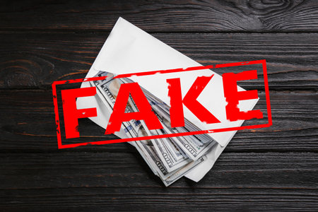 wooden blocks as domino blocks with the message FAKE NEWS surrounded by a smartphone and computer keyboard on stone pavement background