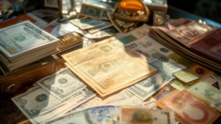 Beautiful Dollars on a table night background. US Dollars Cash Money. fifty dollar banknotes.