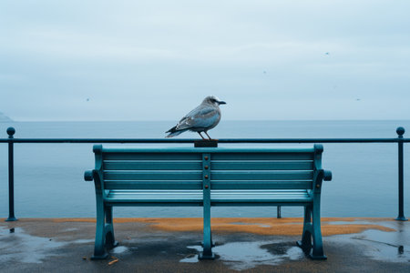 a bird sitting on a bench