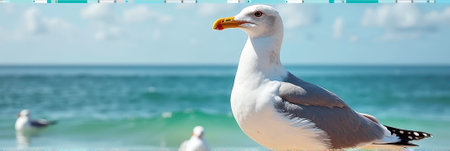 Beautiful Seagull Summer Day in Llandudno Sea Front in North Wales, United Kingdom, banner size