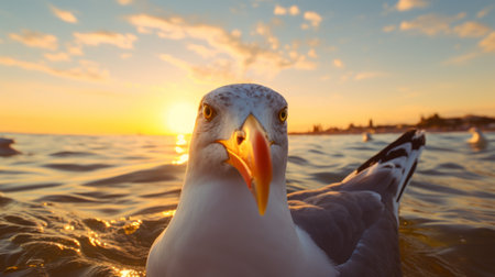 Generative AI : sea bird seagull nature closeup