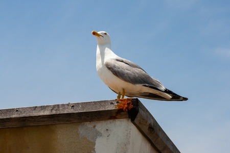 Portrait of a seagull on a pier in the port