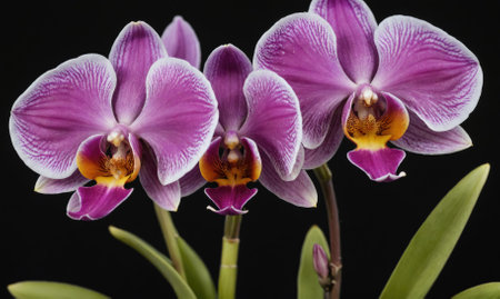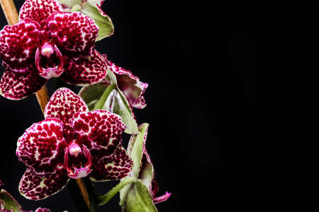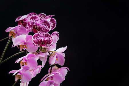 Orchid Flowers on Black Background with Copy Space. Selective focus.